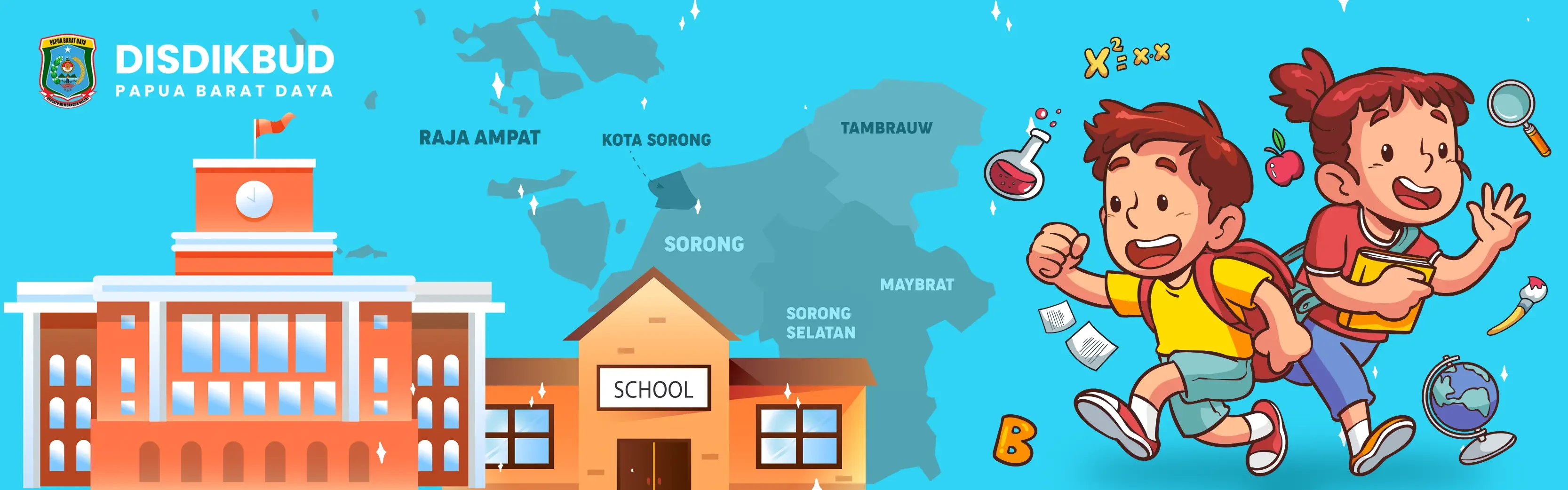 Selamat datang di website Dinas Pendidikan dan Kebudayaan Papua Barat Daya. Website ini digunakan sebagai salah satu bentuk upaya untuk memaksimalkan pelayanan publik kepada masyarakat dalam bidang pendidikan di Papua Barat Daya.