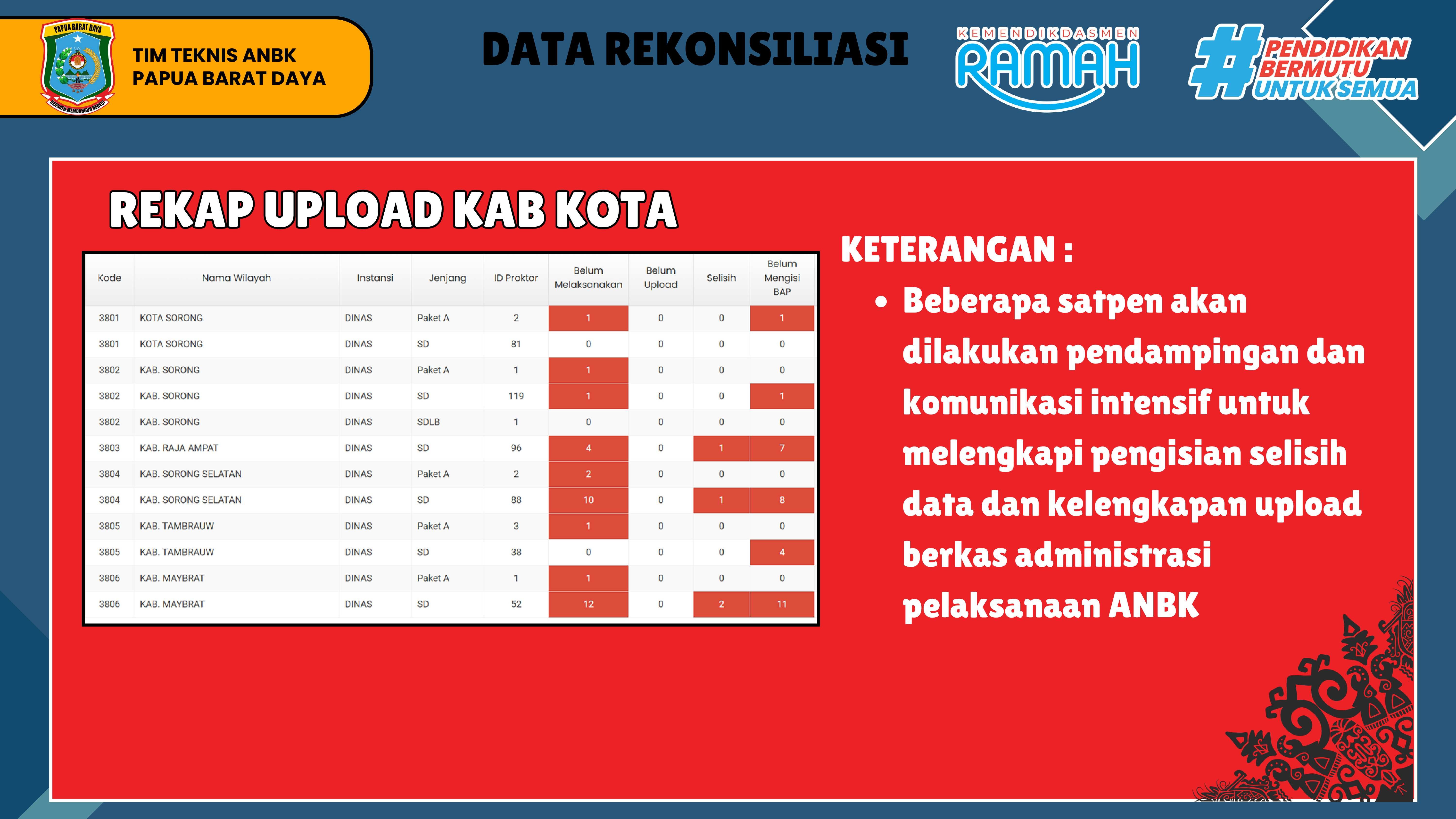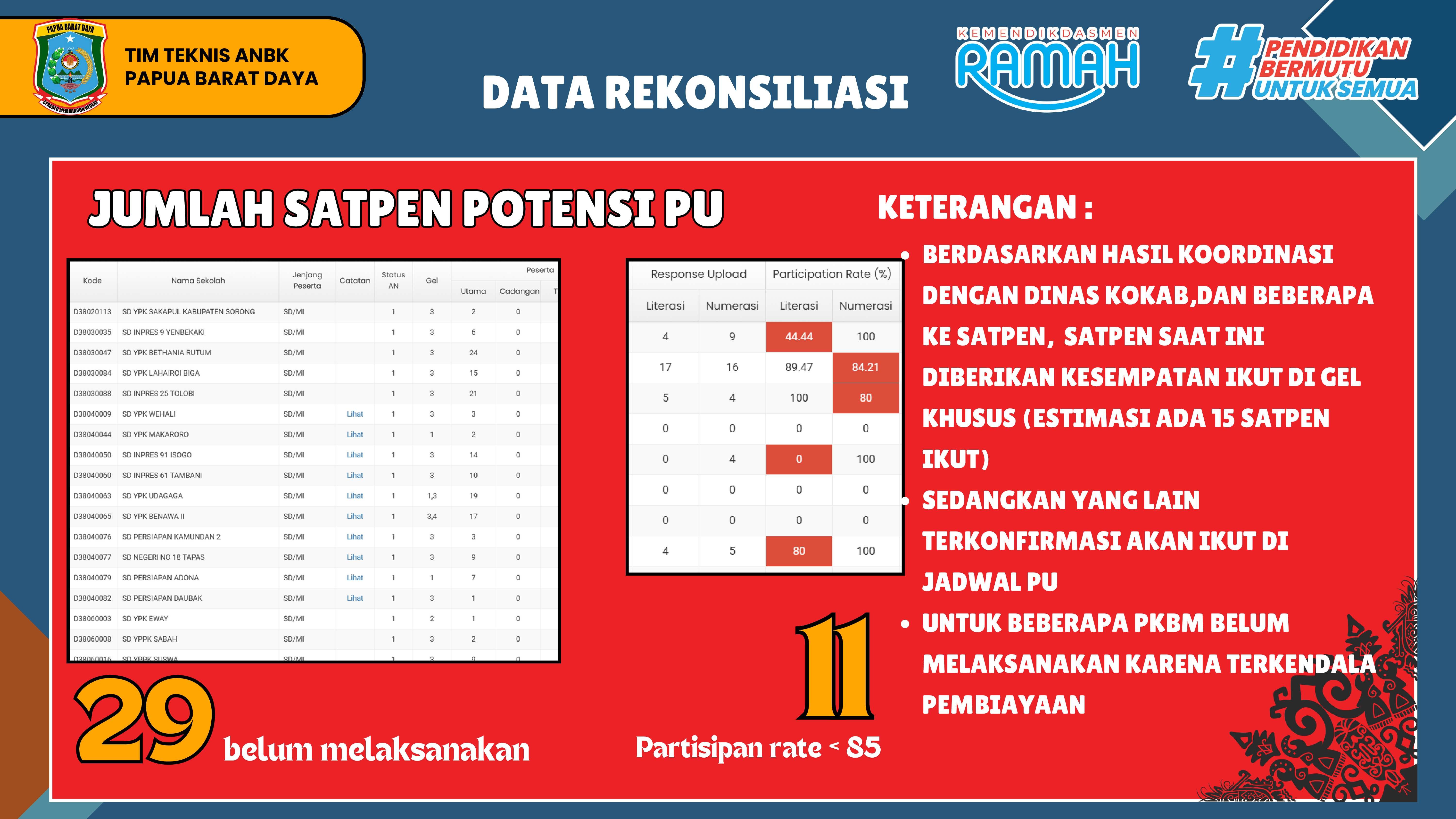 Rekonsiliasi Data Pelaksanaan ANBK Jenjang SD/SDLB/Paket A Tahun 2025 Papua Barat Daya